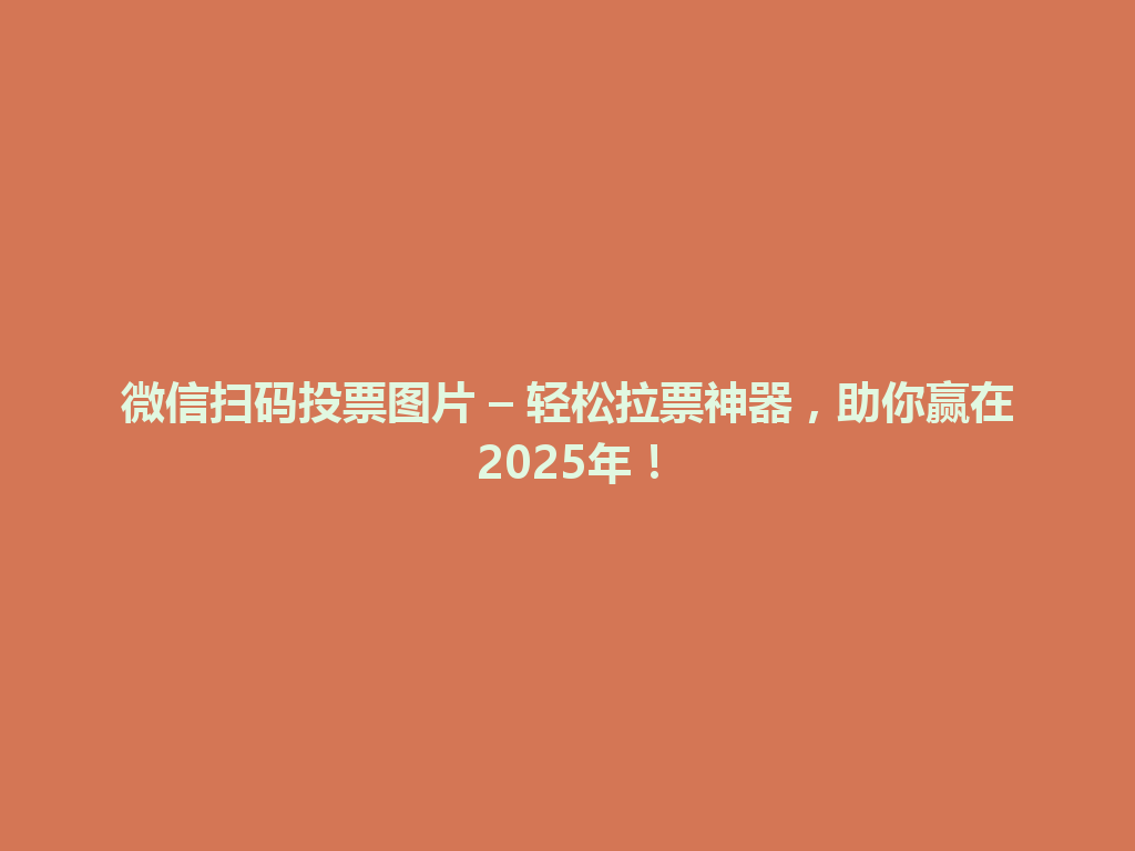 微信扫码投票图片是一个非常实用的拉票工具,它不仅提升了投票的便利性和趣味性,还能通过朋友圈的传播效应,让更多人参与进来,所以不妨动动脑筋,利用这个工具来提升你的得票率,朝着2025年的胜利大步前进吧!